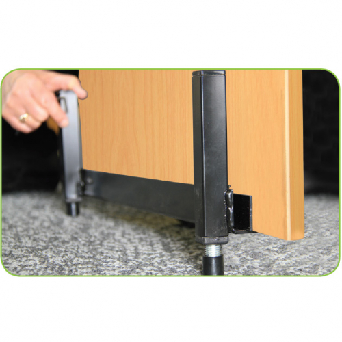 Raises an office desk to achieve correct working heights for taller operators; also allows working surfaces to be raised for standing operators.
