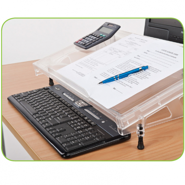 - Ensures a comfortable body posture when transferring hardcopy material onto the computer.