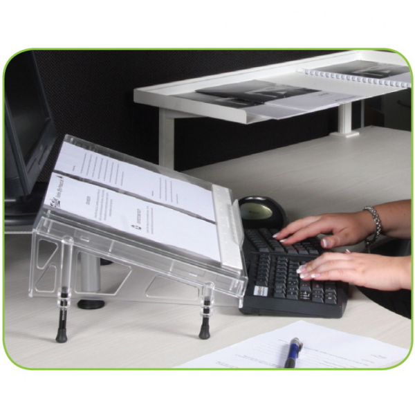 - Ensures a comfortable body posture when transferring hardcopy material onto the computer.